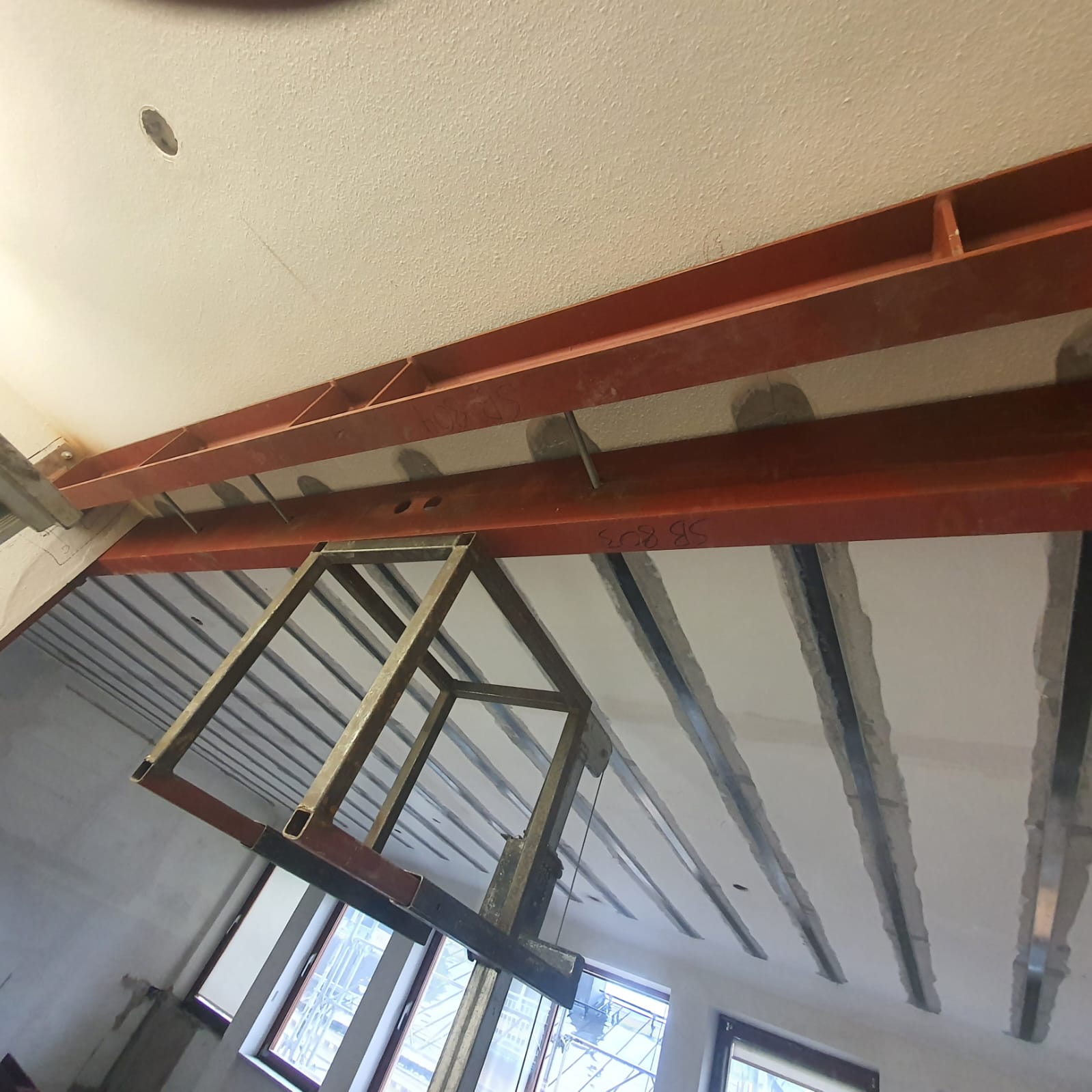 Våra Smeder hjälper just nu vår samarbetspartner Bygg R1 med att montera avväxlingsbalkar i ett 8 våningshus inne i centrala Stockholm. balkarna förbereds på verkstan och forslas sedan med kranbil till arbetsplatsen .